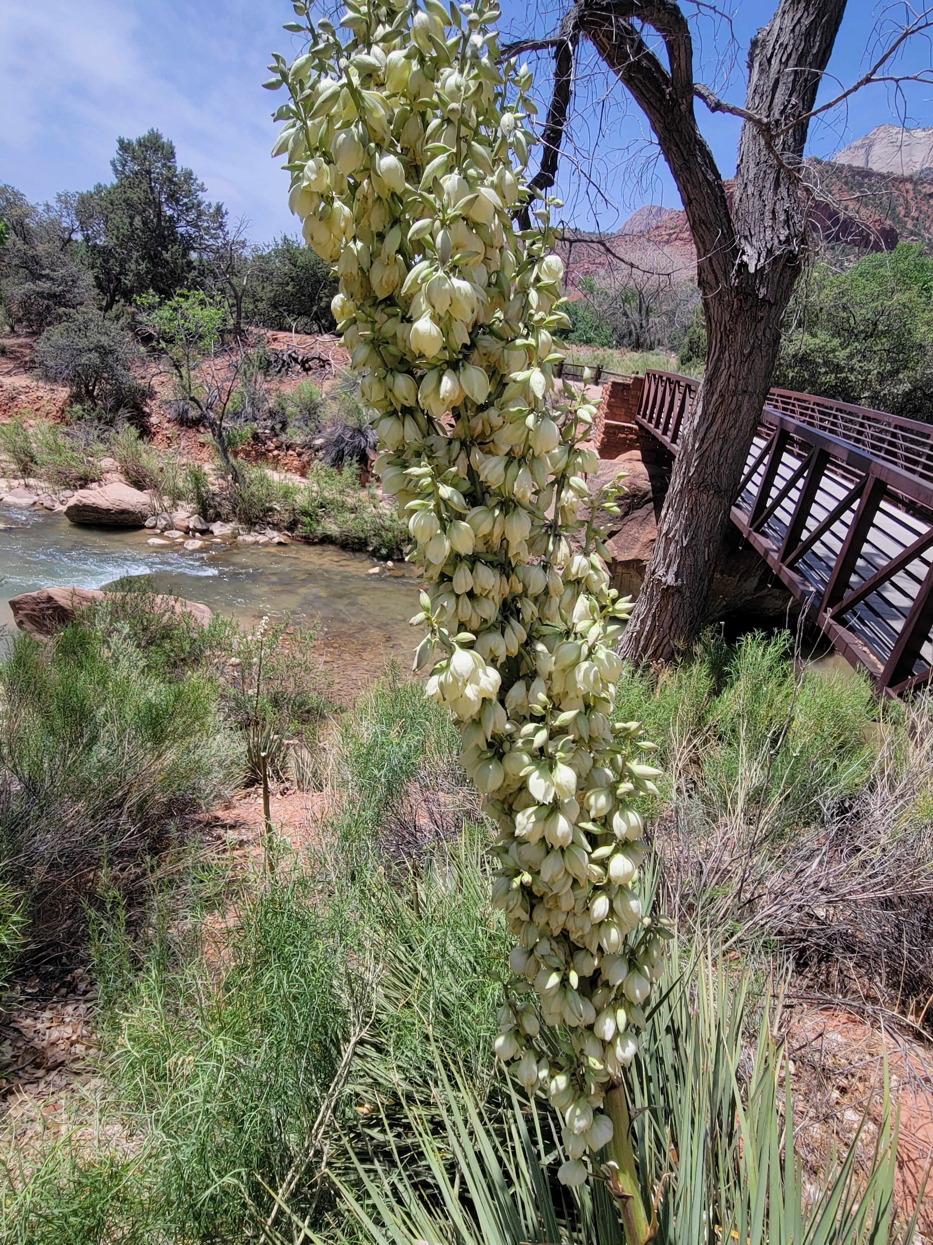 Today on my ride up Zion Canyon after “work” (yes, I do do long rides by myself, sometimes) I stopped to admire this wonderful blooming plant alongside the Pa’rus Trail and the Virgin River.