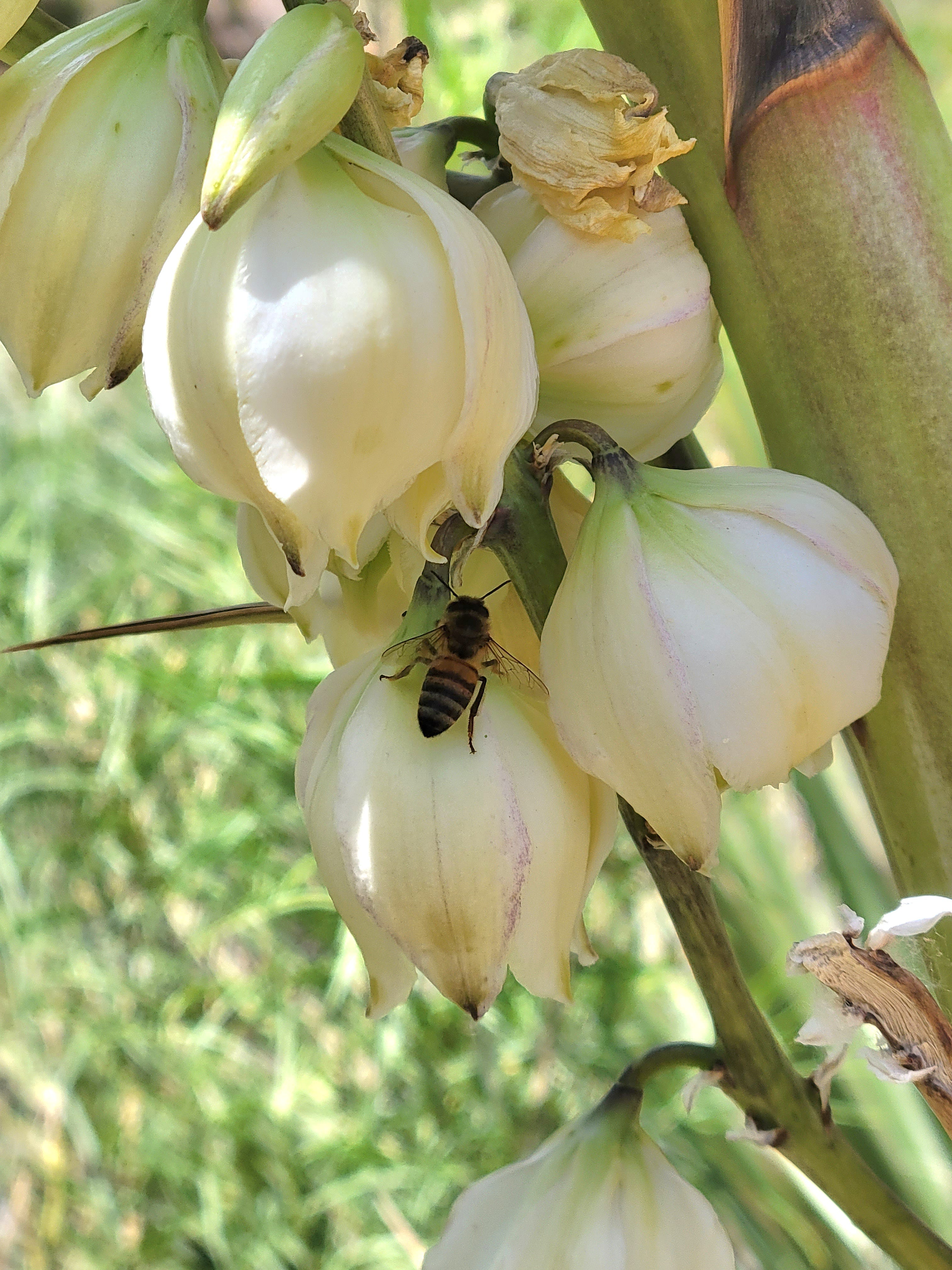 BONUS: Fun fact for my beek friends … Honey bees do not pollinate yucca. Only the yucca moth pollinates yucca plants. “For more than 40 million years there has been a relationship between yucca plants and yucca moths. It’s a particularly important one because neither the yucca or the moth can survive without the other. The moth’s larvae depend on the seeds of the yucca plant for food, and the yucca plant can only be pollinated by the yucca moth.” Who knew!?